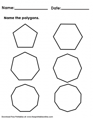 Free Printable Identifying Polygons Worksheets, a very useful Geometry resource to teach Teachers and parents can use this free Geometry worksheet activity at classroom, tutoring and Students can write down the correct polygon name in the line provided. Download printable polygon worksheets to learn the properties, identify and classify the polygons, find the area and perimeter of polygons, angles, and more! She'll draw lines to complete each shape using a ruler, then write the polygon's name on the line.
