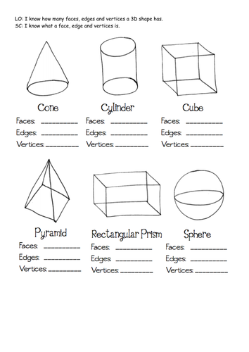 printable 3d shapes worksheets properties 6 - faces edges ...