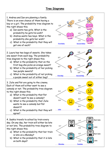 Probability Tree Diagram Worksheets by Highs and Lows of a ...