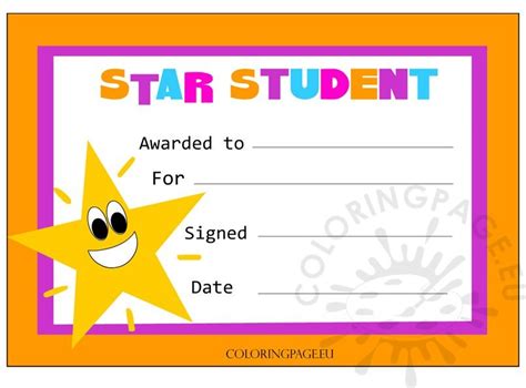 Star Student Certificate – Coloring Page