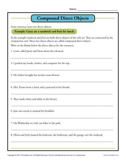 Compound Direct Object Worksheet | Parts of a Sentence ...
