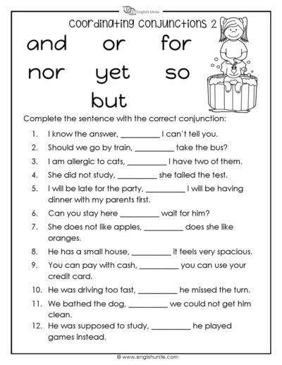 Basic Coordinating Conjunctions Worksheet - English Unite