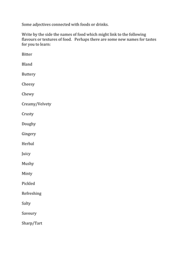 The sentences on worksheet have a cooking/kitchen theme.
