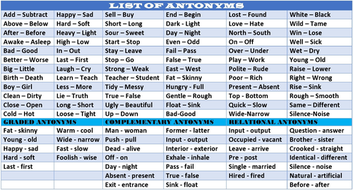 Antonyms can be used to demonstrate contrast between two things or provide clues as to what is meant. All words can have a synonym. Check out the complete Synonyms and Antonyms Word list from the table given below -.