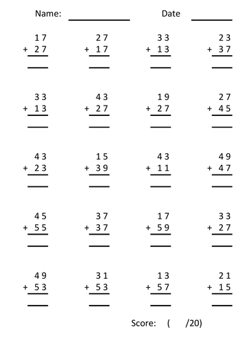No matter how many digits are in If you're writing problems down, be sure to write the carried digits in small print above the column of. Two-Digit Addition (No Regrouping) Adding tens and ones with blocks Vertical addition Fill in the missing number in each problem Adding cents Horizontal and vertical addition Vertical addition Horizontal addition Fill in the missing numbers. Second grade is a very important year where students develop fluency with two-digit addition and subtraction.
