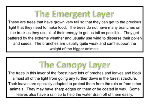 They draw, or write the names of, the rainforest animals next to the layer of the rainforest where they think they might live. The fact file gives your students lots of information about deforestation in rainforests and the effects it has. Help your class to learn rainforest terminology with this simple activity.