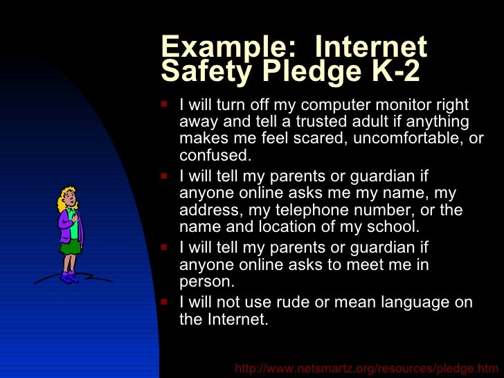 I will not give out information about myself online Keep my home address and telephone number a secret Slideshow. Take the SWANA Safety Pledge to show your commitment to protecting yourself and others from harm every day. Your pledge: Says that you care and shows that you are against bullying and united for kindness, acceptance and inclusion.